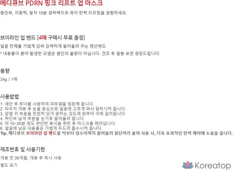 Маска-лифтинг Medicube PDRN Pink Lift Up Mask, по 1 шт., упаковка 8 шт.