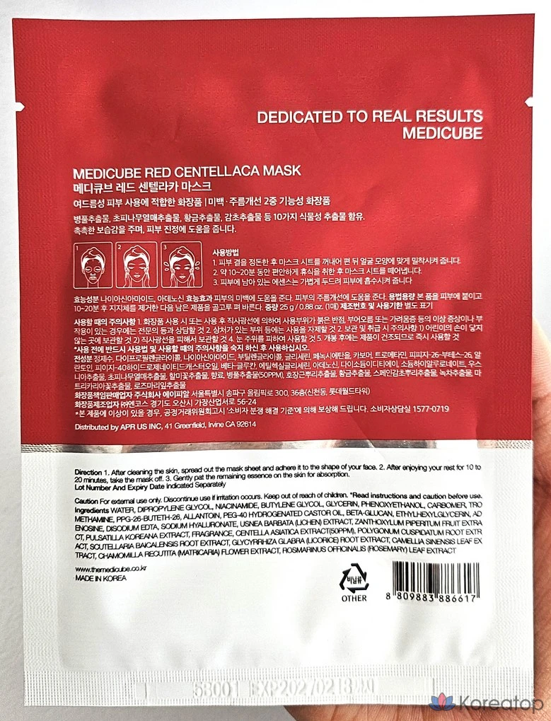 Маска Medicube Red с экстрактом центеллы азиатской предназначена для интенсивного увлажнения и успокоения кожи. Она помогает уменьшить покраснения и раздражения, делая кожу более гладкой и мягкой. Легкая текстура маски быстро впитывается, не оставляя липкости, что делает её идеальной для использования в любое время дня. Подходит для всех типов кожи, особенно для чувствительной и склонной к раздражениям. 🌿