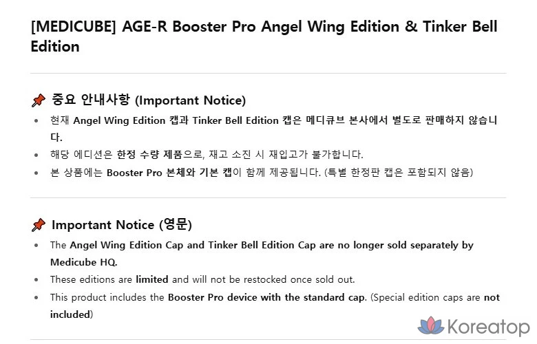 Medicube AGE-R Booster Pro в изданиях Angel Wing и Tinker Bell предлагает уникальное сочетание стиля и эффективности. Эти устройства разработаны для улучшения текстуры кожи и придания ей молодости. Благодаря легкой текстуре и мощному воздействию, они обеспечивают видимый эффект уже после первых применений. Уникальный состав и дизайн делают их идеальными для тех, кто ценит как функциональность, так и эстетику. Эти издания станут отличным дополнением к вашему уходу за кожей, добавляя нотку волшебства в ежедневные процедуры. 🌟