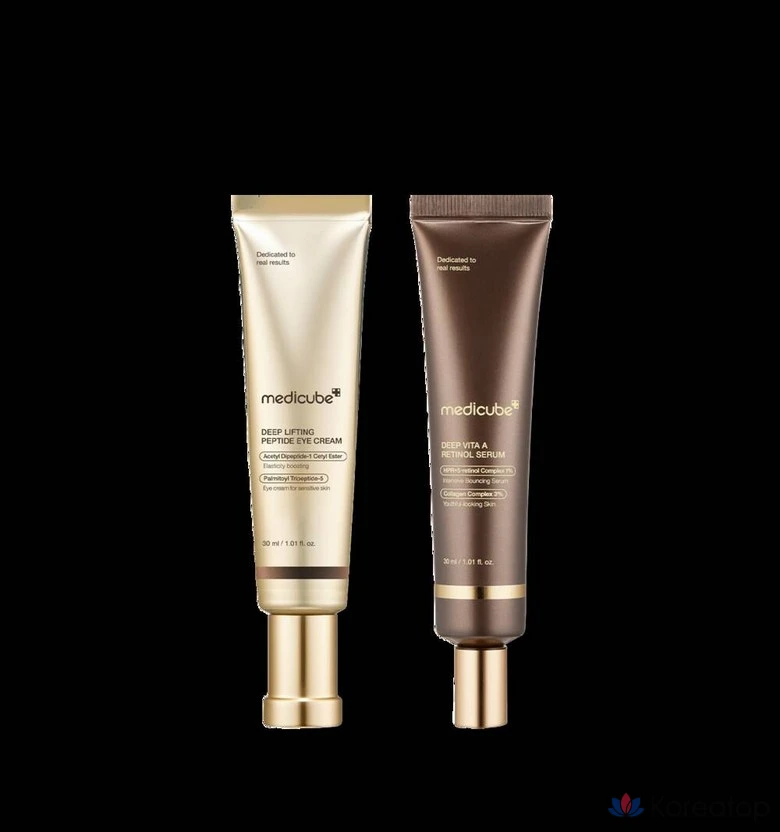 [Medicube] Набор из 2 предметов для глубокого лифтинга и эластичности кожи: крем для кожи вокруг глаз с пептидами 30 мл + сыворотка с ретинолом 30 мл