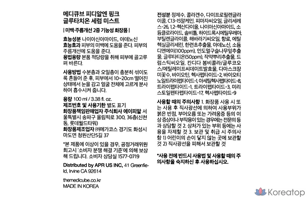 Medicube PDRN Сыворотка-спрей с розовым глутатионом, 5 шт., 100 мл