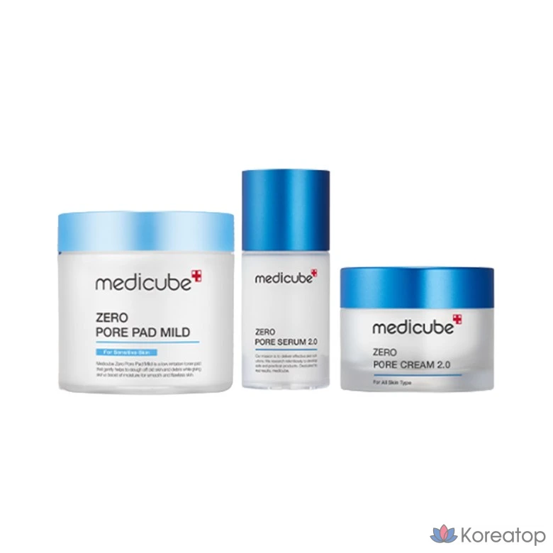 Набор Medicube Zero Pore из 3 предметов / Мягкий тонер-спонж с сывороткой и кремом