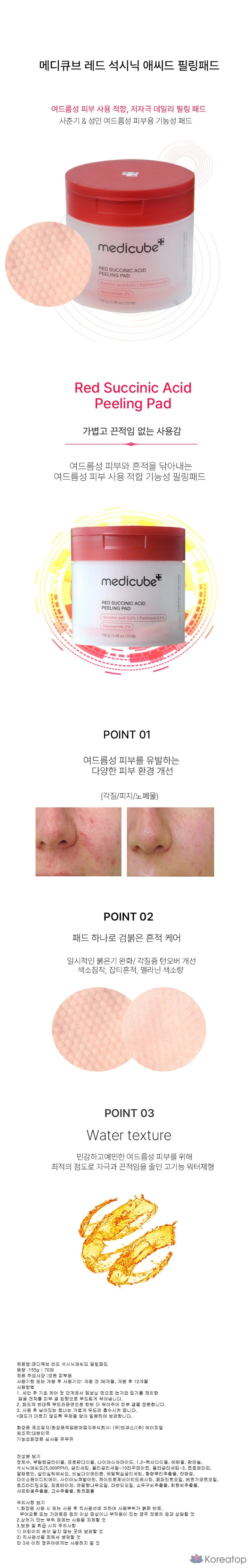 Начните с сегодняшнего дня Medicube Red Peeling Pad с янтарной кислотой, 70 листов + Случайный подарок, Быстрая доставка, 1 штука, 70 штук