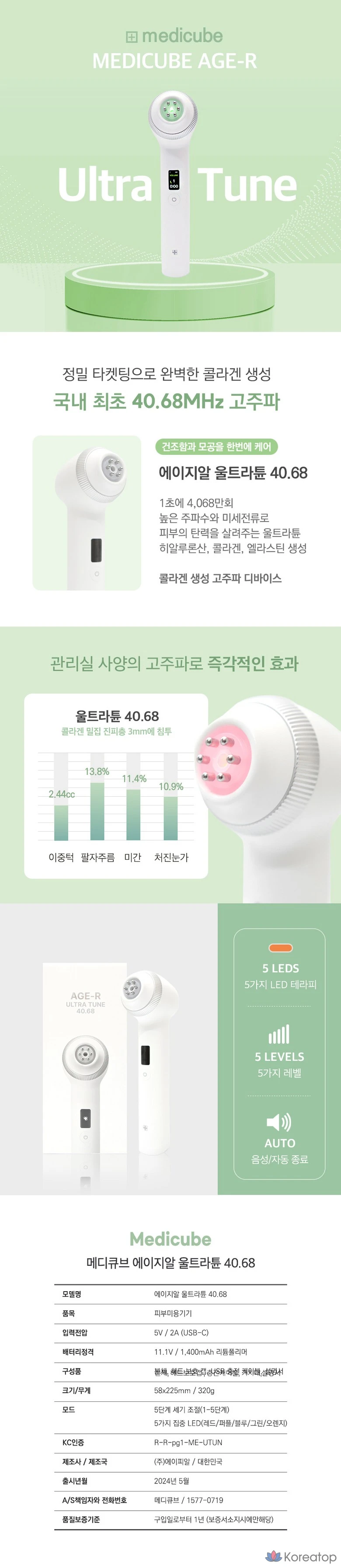 [Оригинальный отечественный продукт/бесплатное послепродажное обслуживание] Высокочастотный аппарат Medicube для повышения эластичности коллагена AGER Ultratune 40.68
