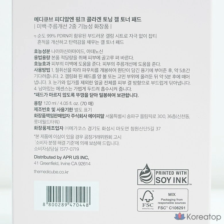 Отбеливающий тоник Medicube PDRN Pink Collagen Gel Toner Pads, 70 листов