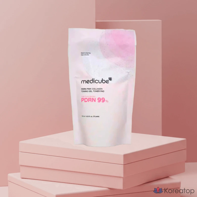 Сменная эссенция для тонирующего геля Medicube PDRN Pink Collagen Toning Gel Toner Pad (без подушечки) / Очищающая лента бесплатно