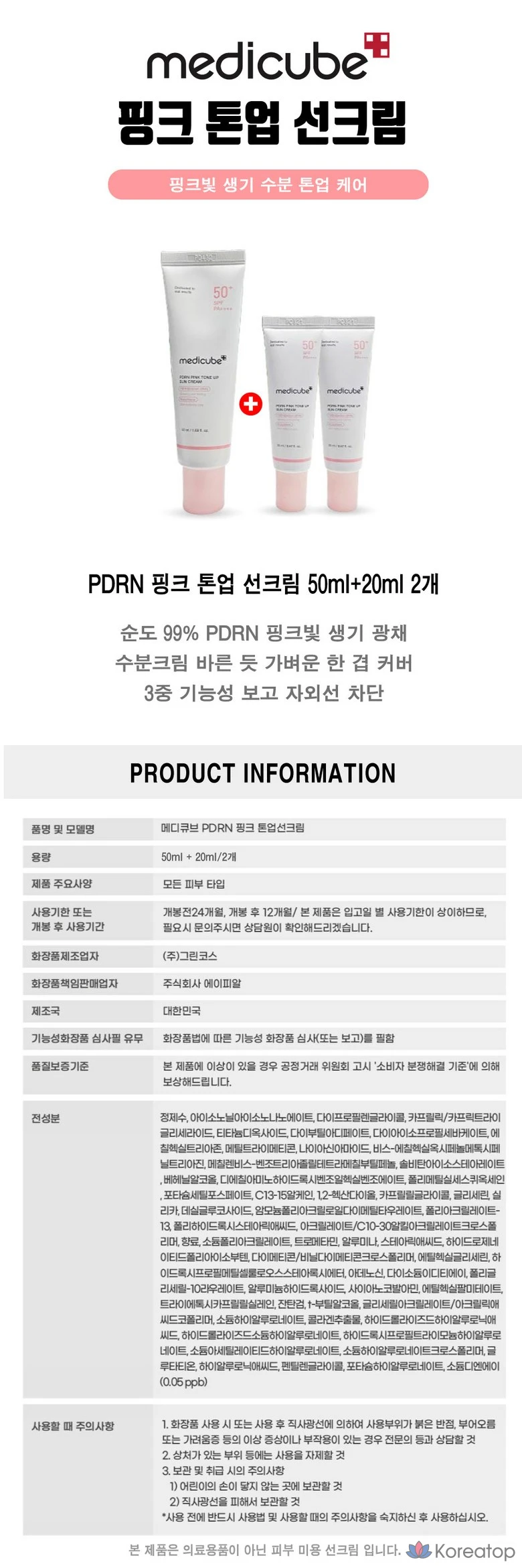 Солнцезащитный крем Medicube Genuine PDRN Pink Tone-Up 50 мл x 2 + 20 мл / TJ, 1 x 120 мл