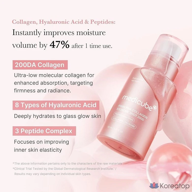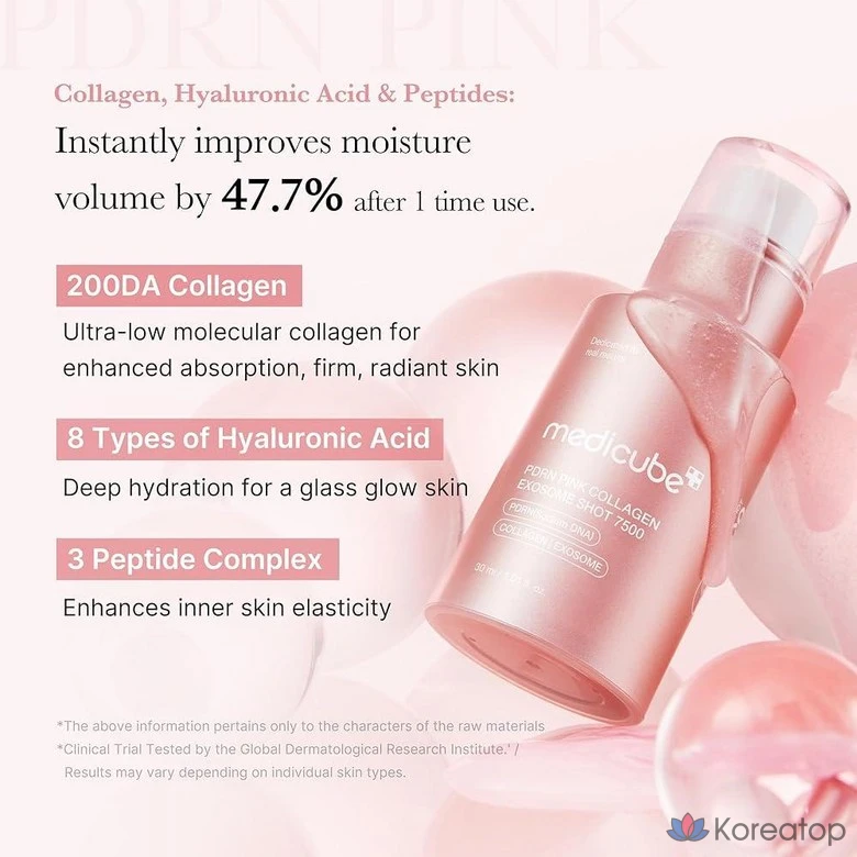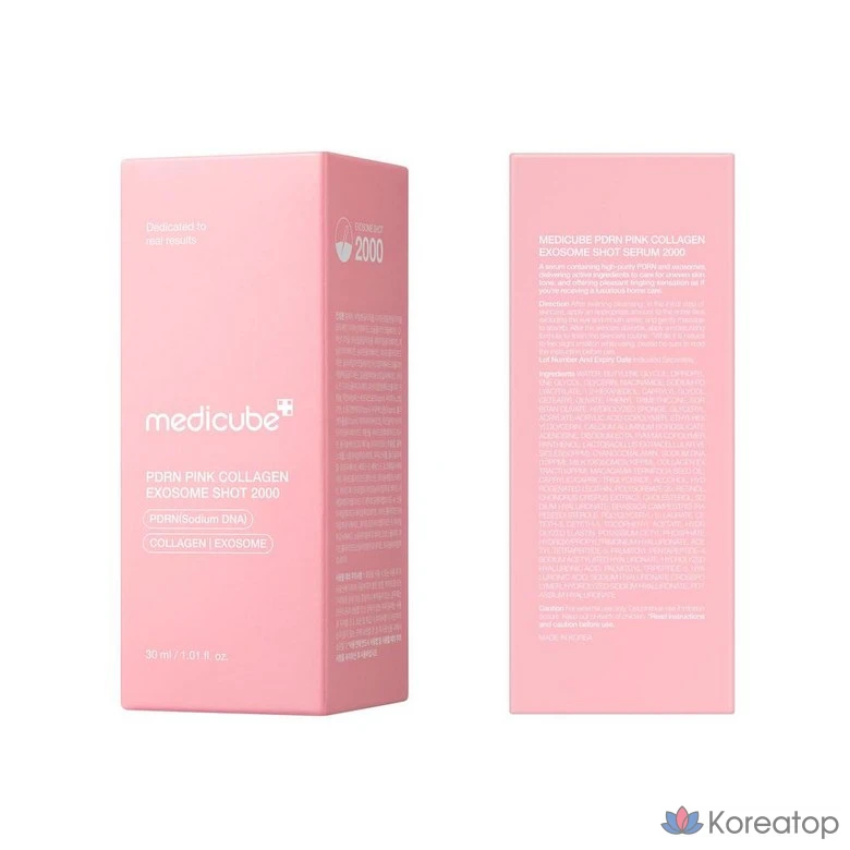 Сыворотка Medicube PDRN Pink Collagen Exosome Shot 2000 PPM | Жидкий усилитель кожи с экзосомами, ДНК лосося, спикулами, неровным тоном кожи, уходом за порами, 30,5 мл (1,0 мл)