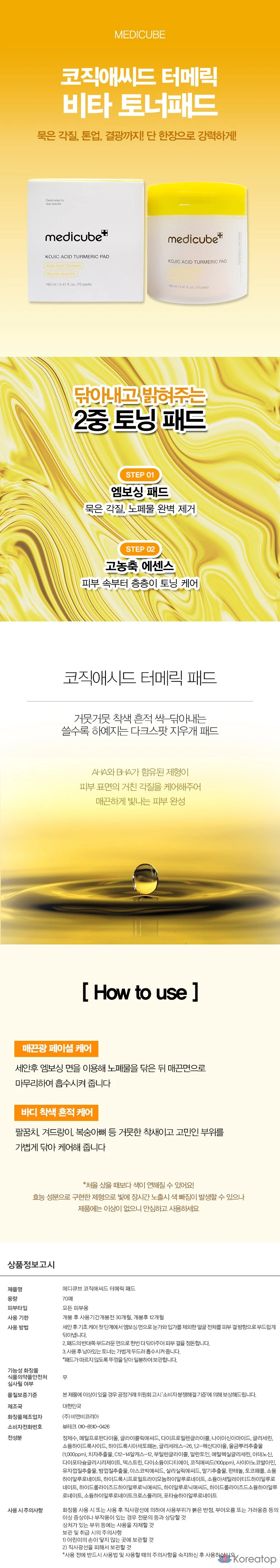 Тонизирующие диски Medicube Cojic Acid Turmeric Vita, 70 листов, цветные ластики