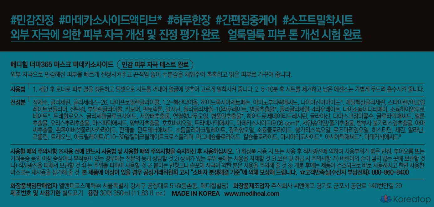 Тканевая маска Mediheal с мадекассосидом для успокоения кожи, 24 мл