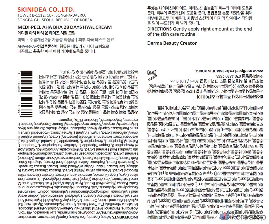Крем MediPeel AHA BHA 28 Days Hyal Cream разработан для интенсивного ухода за кожей в течение 28 дней. Он содержит AHA и BHA кислоты, которые помогают в обновлении клеток и улучшении текстуры кожи. Благодаря гиалуроновой кислоте, крем обеспечивает глубокое увлажнение, делая кожу мягкой и упругой. Натуральные ингредиенты в составе способствуют бережному уходу, а легкая текстура быстро впитывается, не оставляя жирного блеска. Идеально подходит для ежедневного использования, чтобы поддерживать здоровье и красоту вашей кожи. 🌿💧