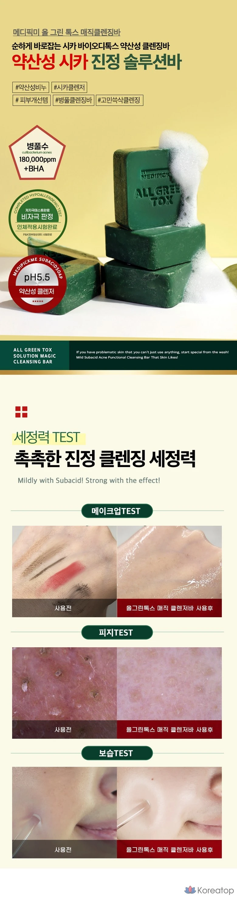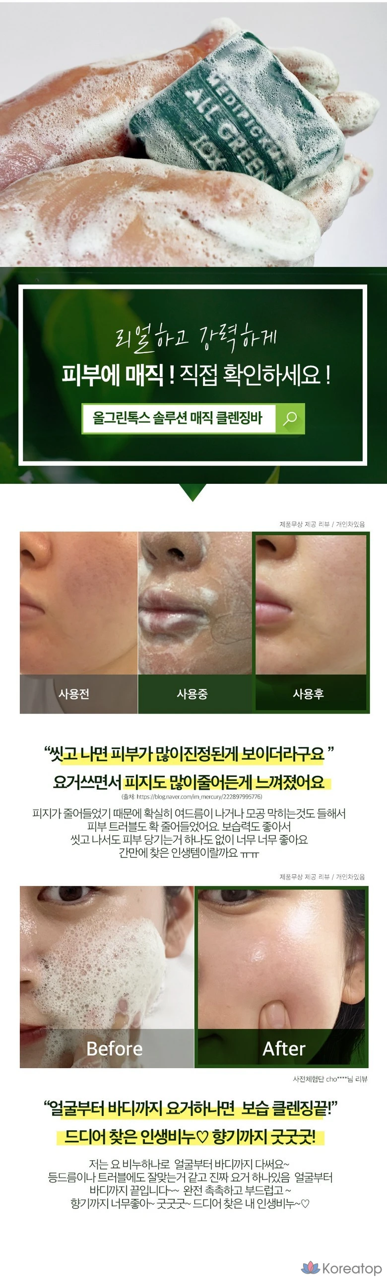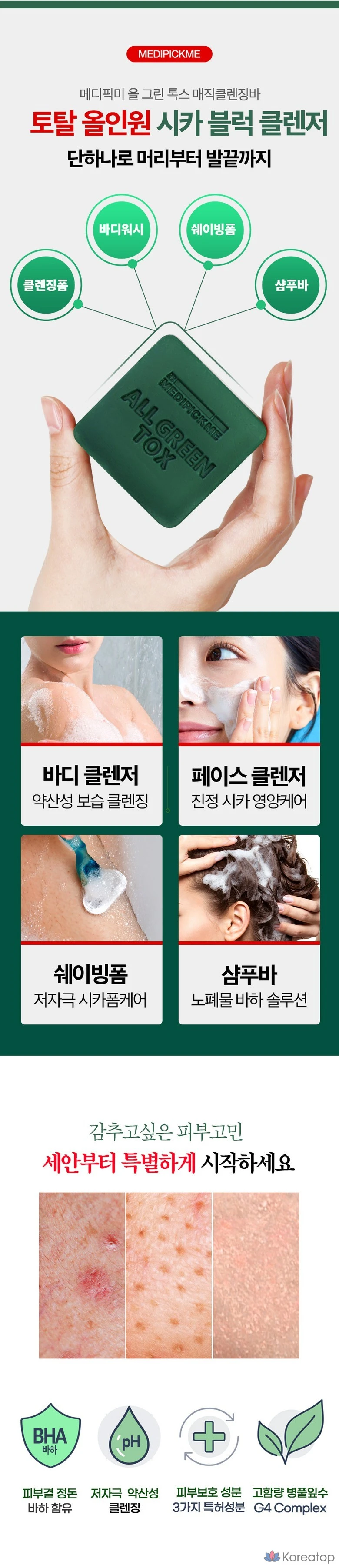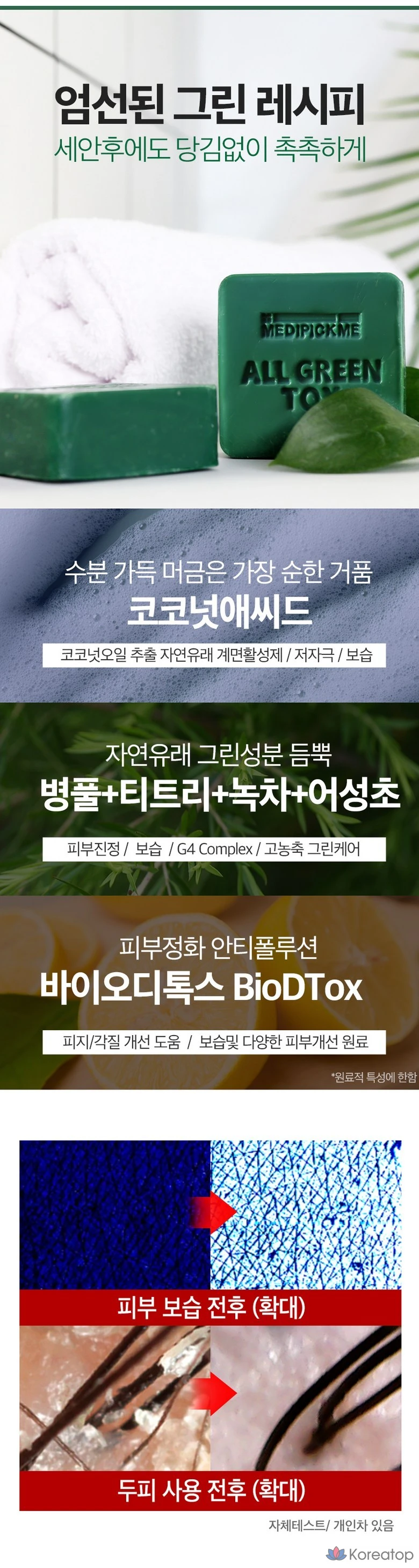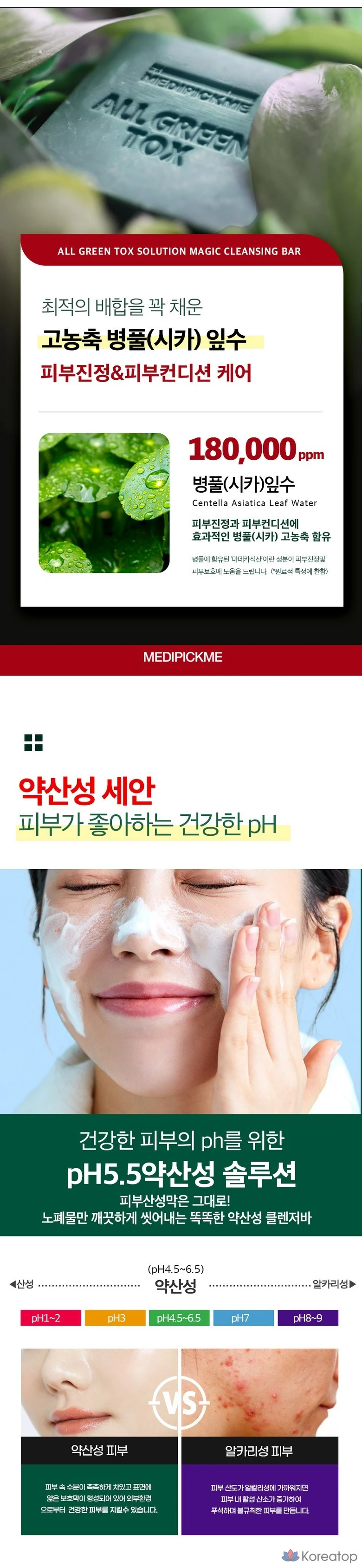 Очищающее мыло Medipick Me All Green Tox Solution Magic создано для тех, кто заботится о здоровье своей кожи. Благодаря натуральному составу и уникальной формуле, оно эффективно удаляет загрязнения и токсины, оставляя кожу свежей и увлажненной. Эффект детокса помогает восстановить естественный баланс кожи, а увлажняющая текстура обеспечивает комфортное использование. Это мыло станет незаменимым помощником в ежедневном уходе за кожей, даря ощущение чистоты и свежести каждый день. 🌿🧼