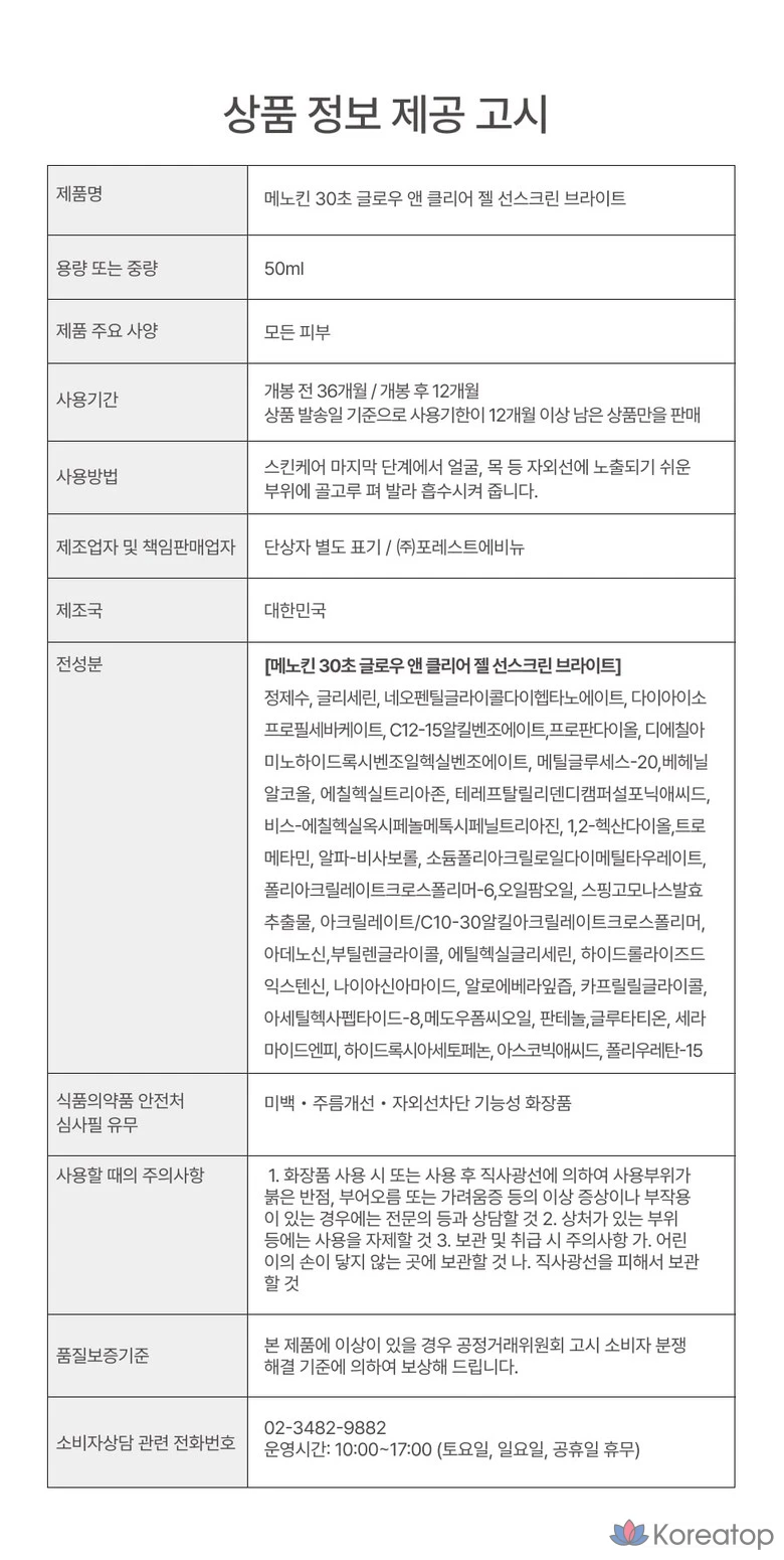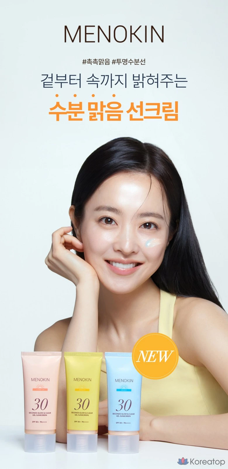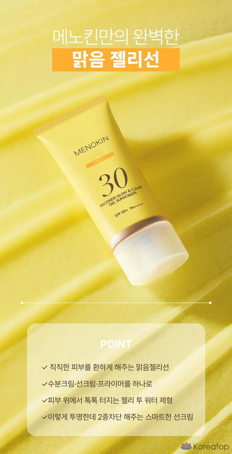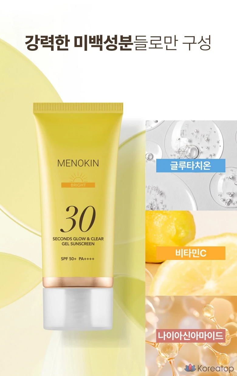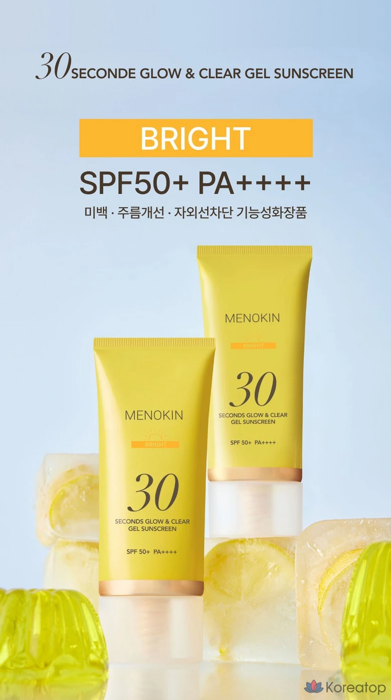 Menokine 30-Second Glow & Clear Gel Sunscreen Bright SPF50+ PA++++, 1 шт., 50 мл