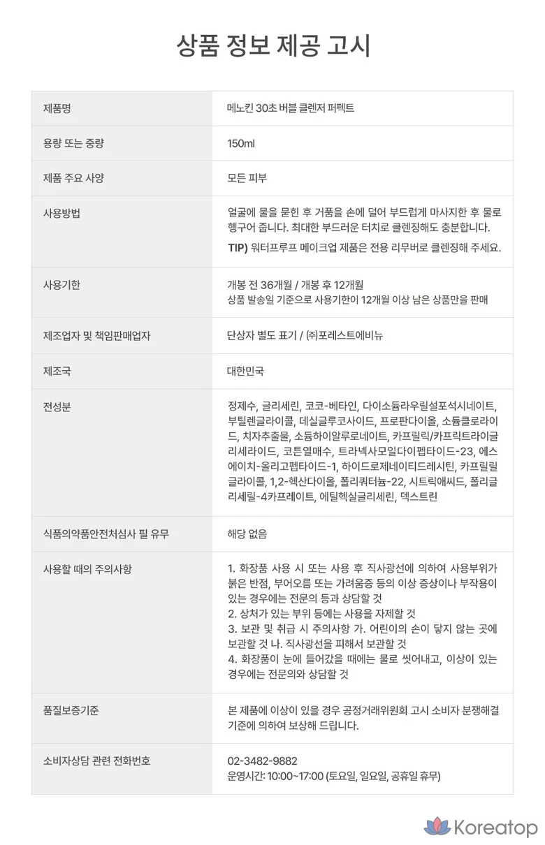 Menokine 30-Second Bubble Cleanser Perfect, 1 шт., 150 мл