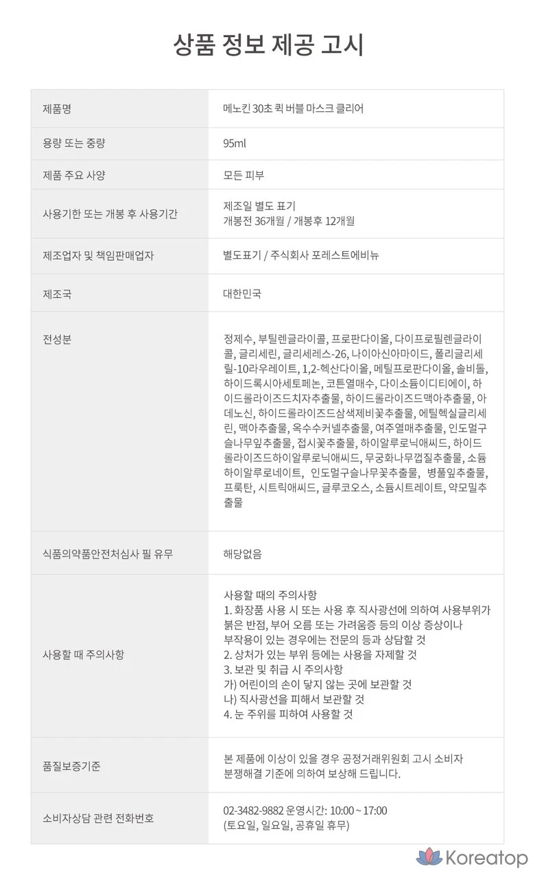 Пенная маска для лица MENOKIN, 1 шт., 95 мл.
