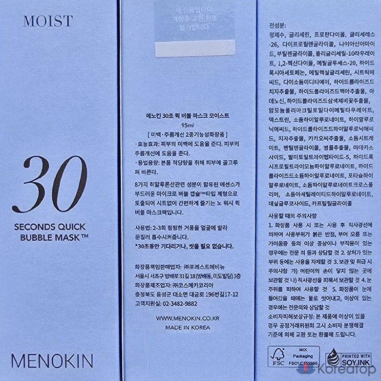 Увлажняющая пурырьковая маска MENOKIN 30-Second Quick Moisture Water Glow Bubble Mask, 1 шт., 95 мл