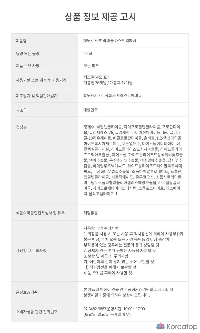 Восстанавливающая пенная маска MENOKIN 30-Second Quick Bubble Mask, 1 шт., 95 мл