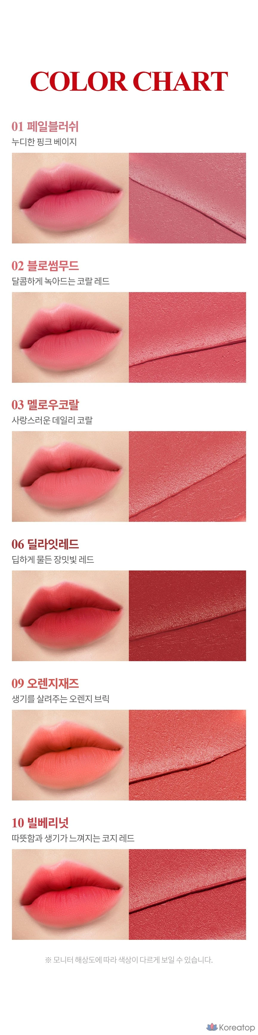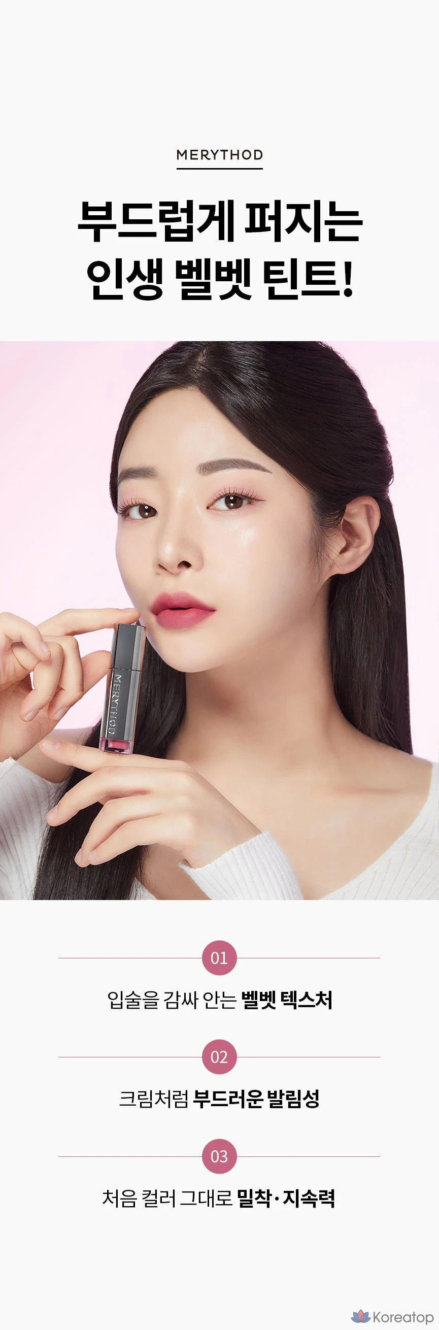 Merzy The First Velvet Tint — это стойкий тинт для губ с насыщенной пигментацией и бархатной текстурой. Формула обогащена маслом ши, которое увлажняет и смягчает губы. Тинт равномерно наносится, обеспечивая матовый финиш и комфортное ношение в течение всего дня. Подходит для создания как повседневных, так и вечерних образов. 💄