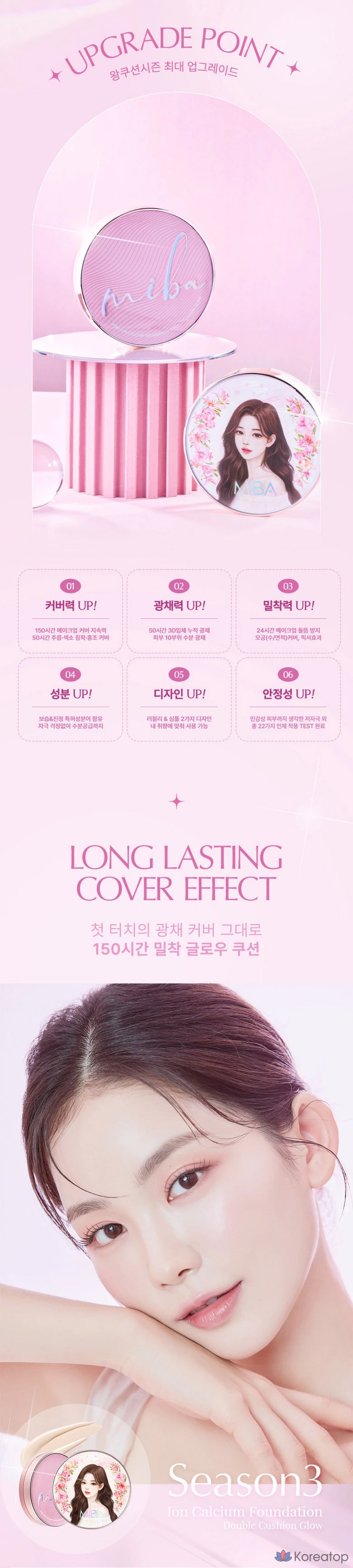 Тональный крем-кушон MIBA Wang Season 3 Ion Calcium Foundation Double Cushion Glow No. 21, сменный блок, светло-бежевый, 1 шт.