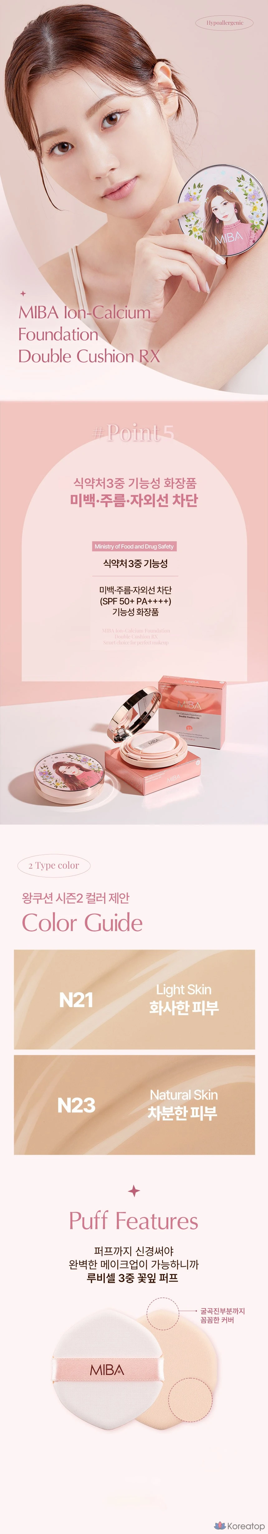 Тональный крем MIBA Ion Calcium Double Cushion Foundation RX 25 г + сменный блок 25 г, № 21 Bright Skin, 1 шт.