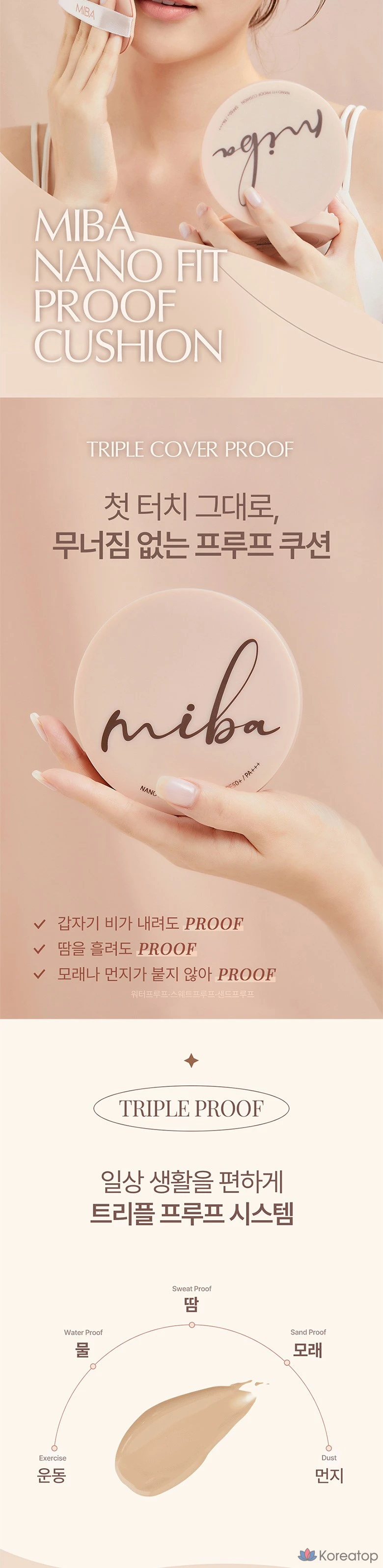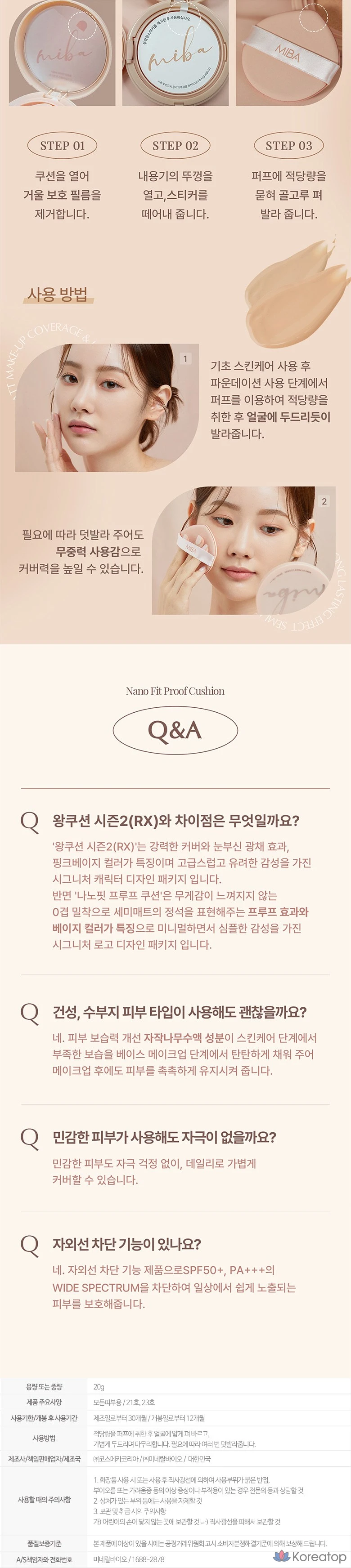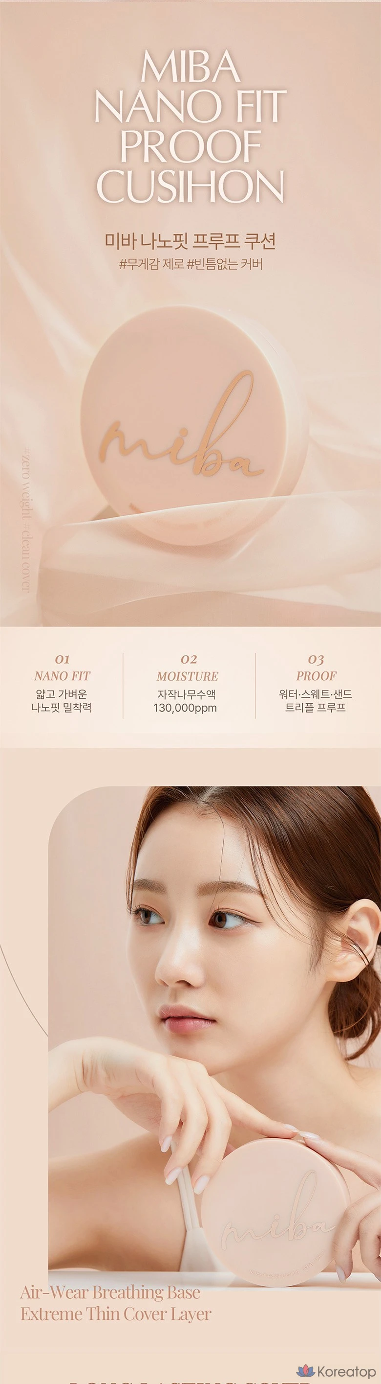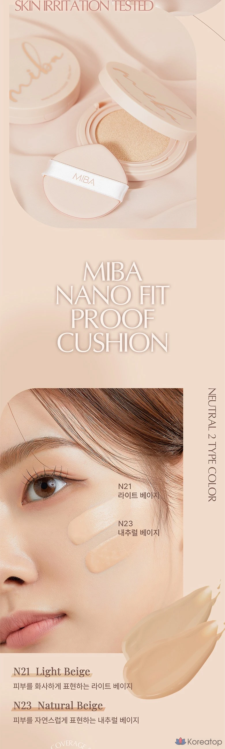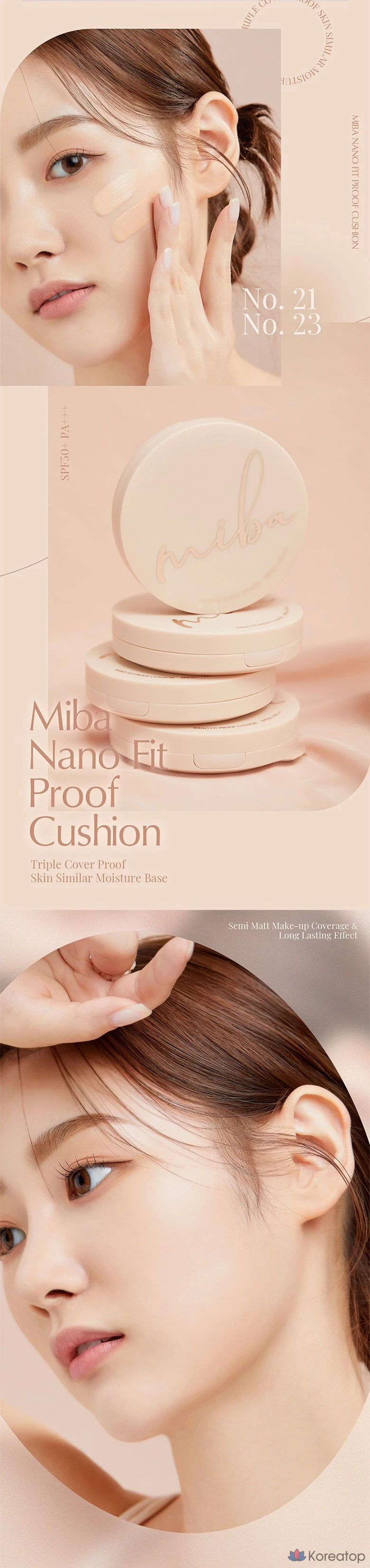 Тональный крем MIBA Nano Fit Proof Cushion Foundation, 20 г, № 23, натуральный бежевый, 1 шт.