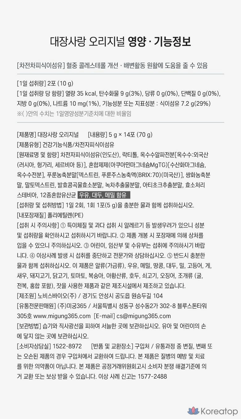 Пищевая клетчатка из шелухи подорожника Migung365 Daejangsarang Original, 70 г