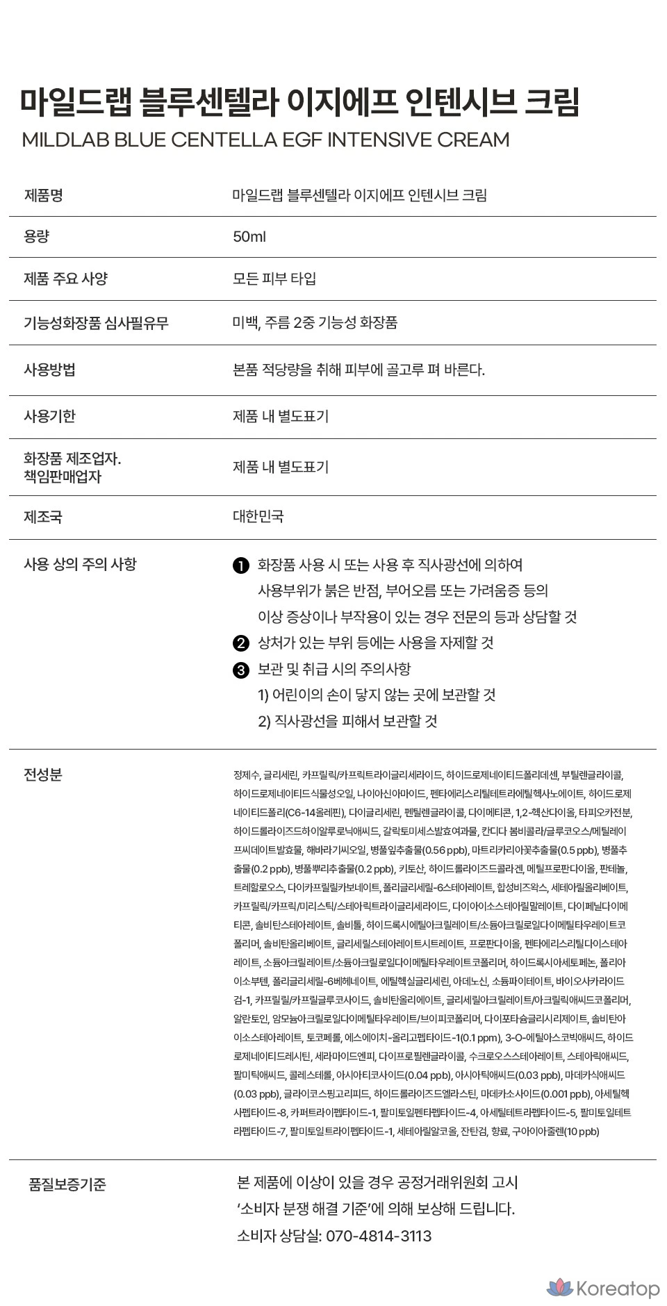 Интенсивный крем Mild Lab Blue Centella Madeca EGF, 50 мл, 1 шт.