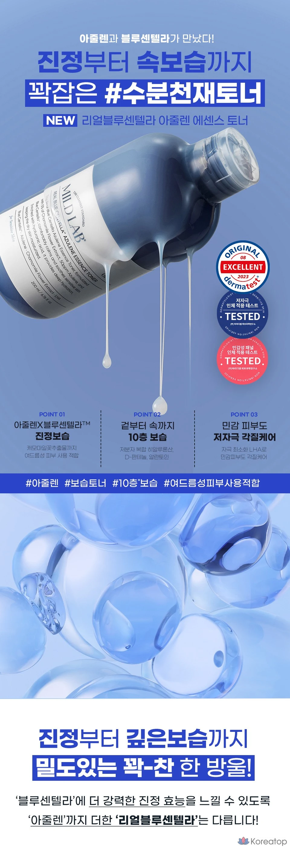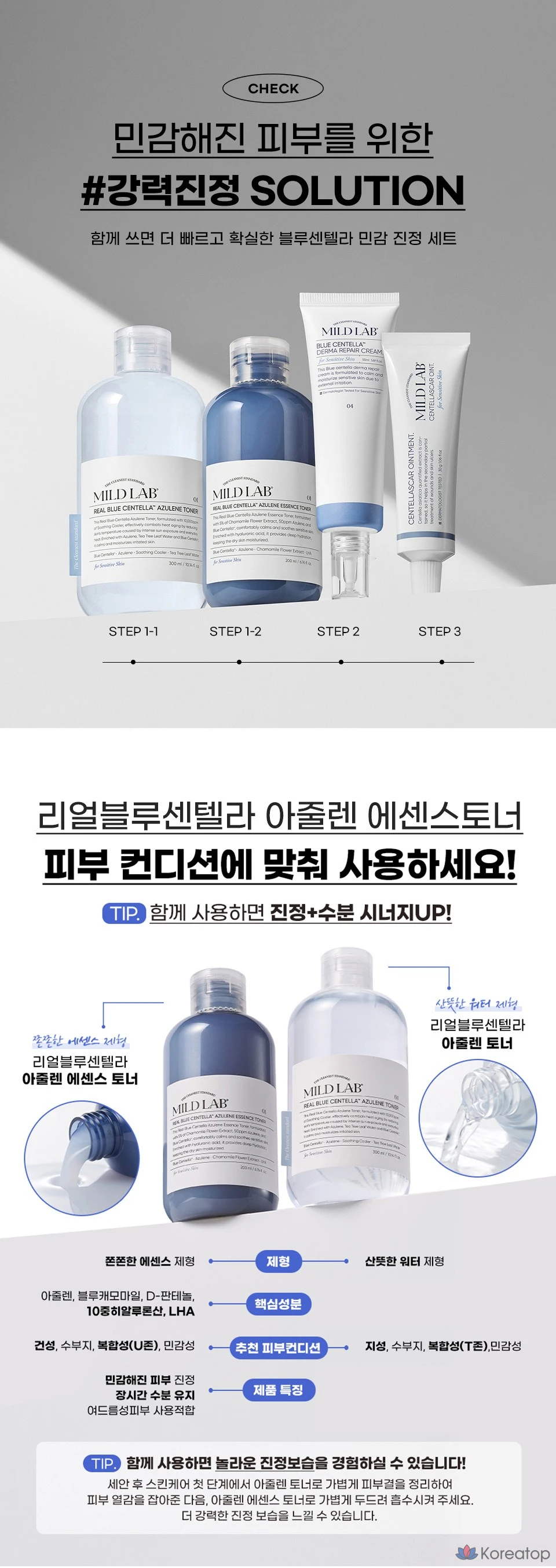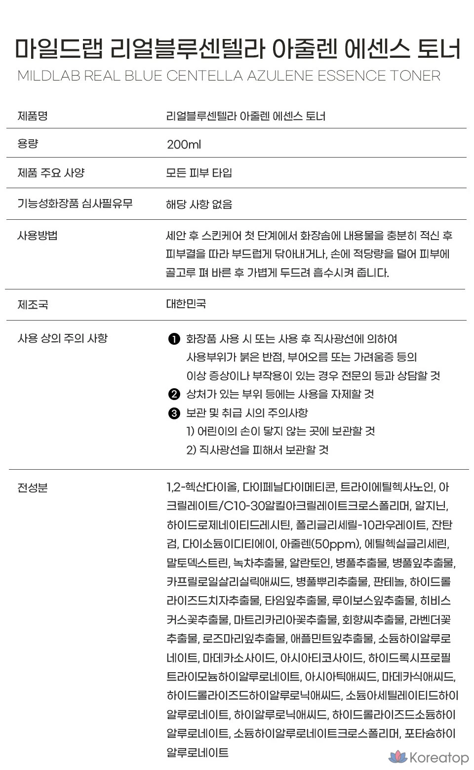 Тоник с центеллой и азуленом Mild Lab Real Blue Centella Azulene Essence Toner