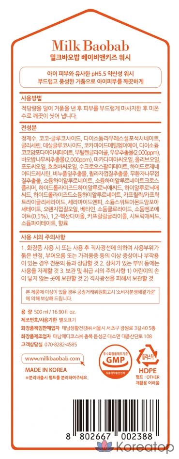 Детский шампунь и гель для мытья Milk Baobab, 500 мл, 1 комплект.