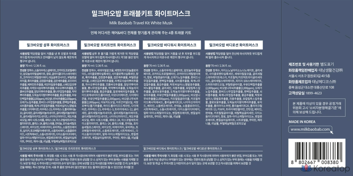 Дорожный набор «Milk Baobab Белый Мускус», 1 комплект.