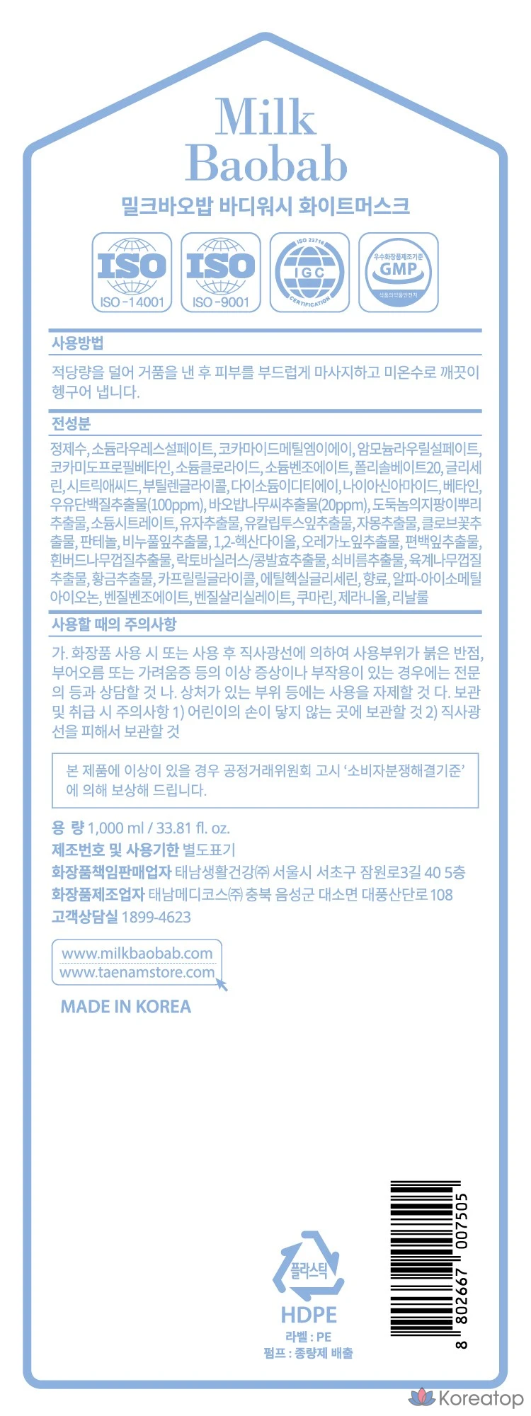 Гель для душа Milk Baobab с ароматом белого мускуса, 800 мл, 1 шт.