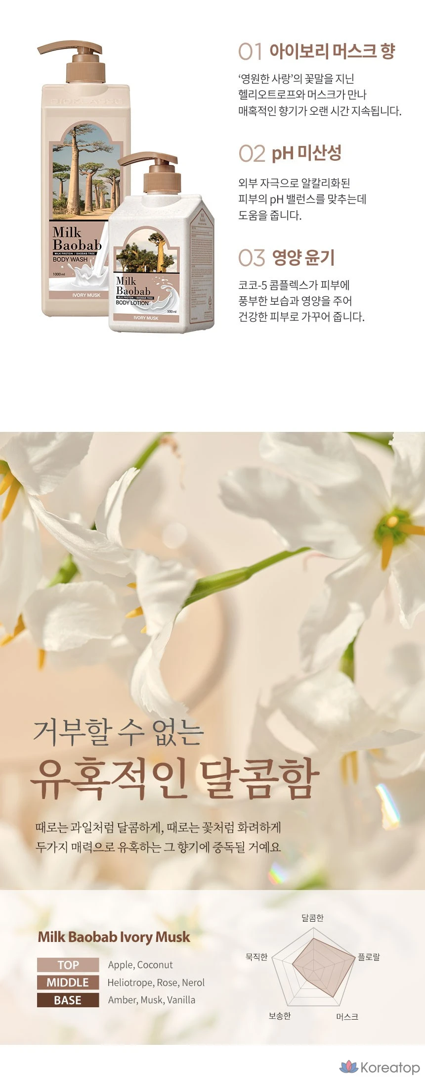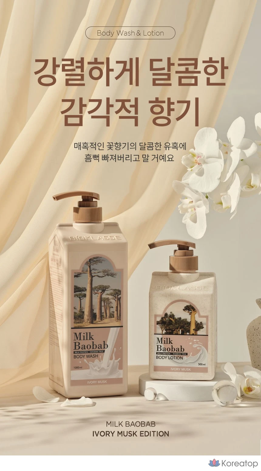Гель для душа Milk Baobab с ароматом слоновой кости и мускуса, 1 л, 1 шт.