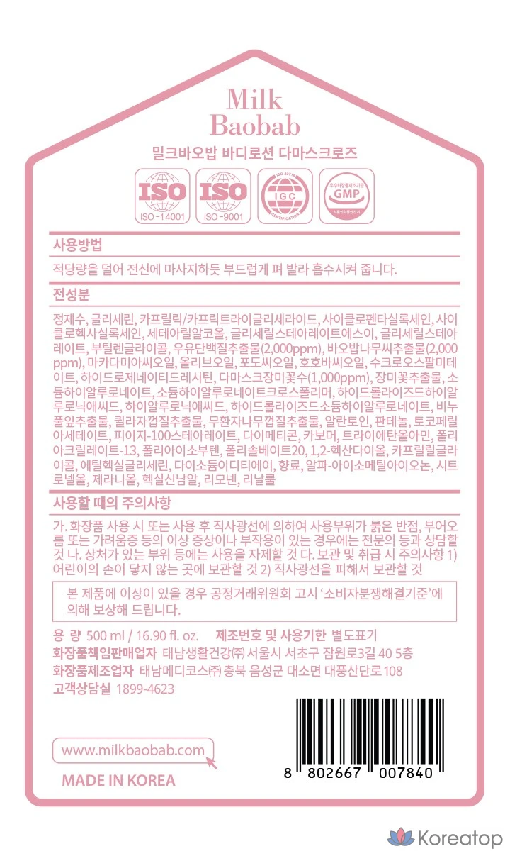 Лосьон для тела Milk Baobab с ароматом дамасской розы, 500 мл, 1 шт.