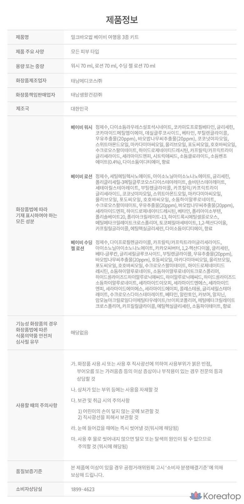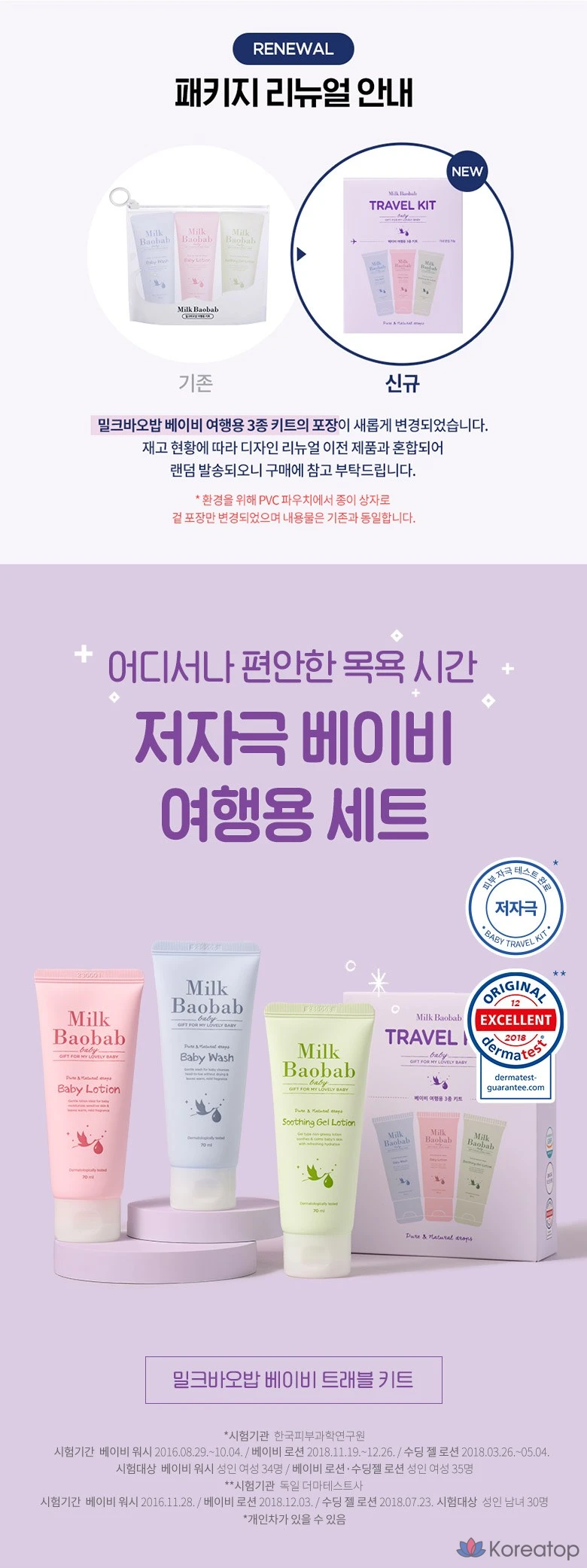 Детский набор для путешествий Milk Baobab Baby Travel Kit: средство для умывания 70 мл, лосьон 70 мл, успокаивающий гель-лосьон 70 мл