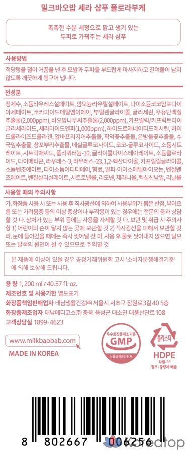 Молочный шампунь Milk Baobab Sera Flora Bouquet, 1,2 л, 1 шт.