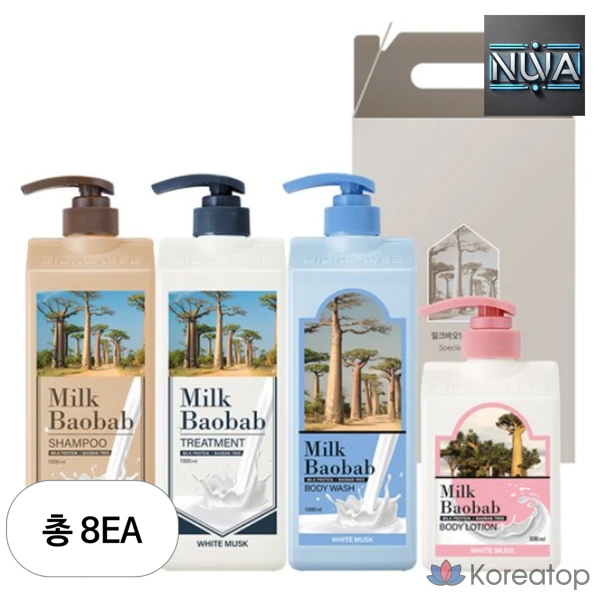 Набор для волос и тела Milk Baobab из 4 предметов (аромат белого мускуса), 1 комплект.