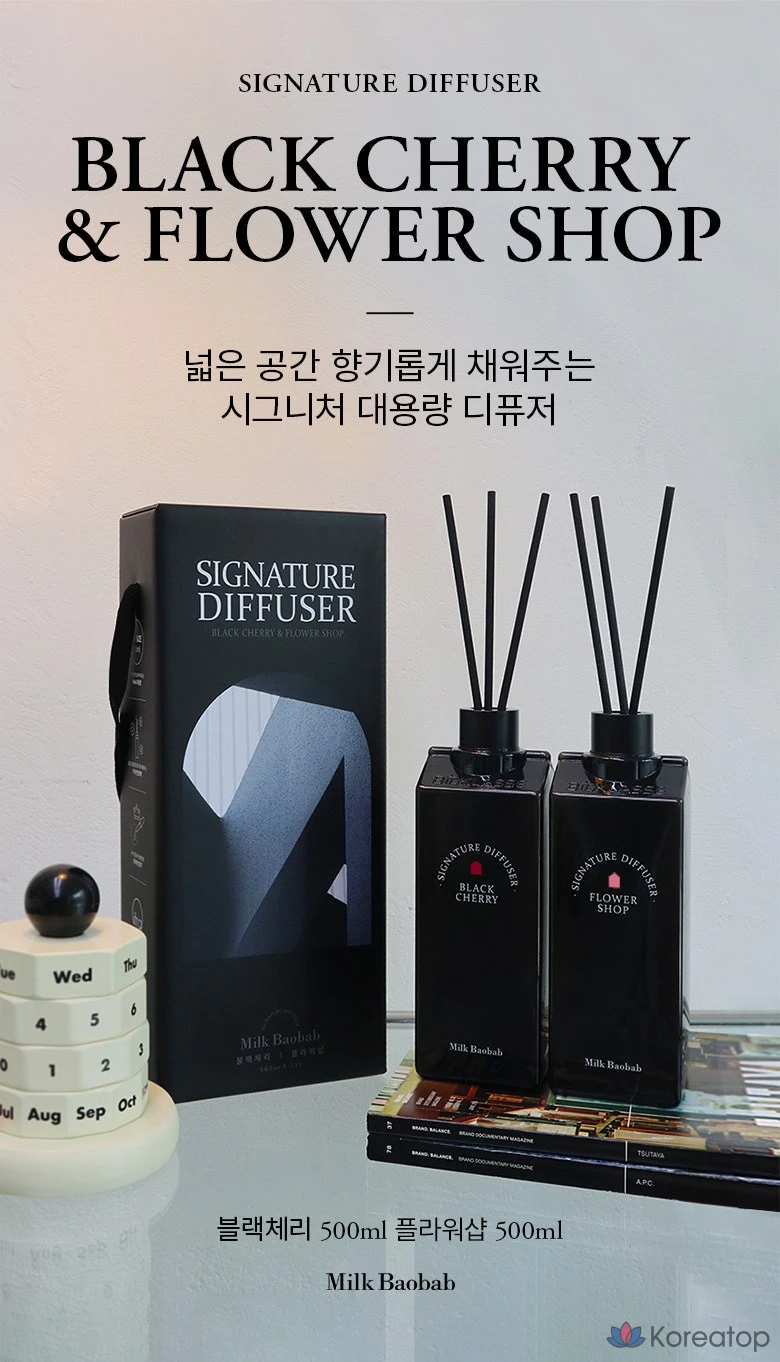 Набор Milk Baobab Signature: диффузор, 2 флакона по 500 мл, аромат «Черная вишня», «Цветочный магазин», 1 шт.