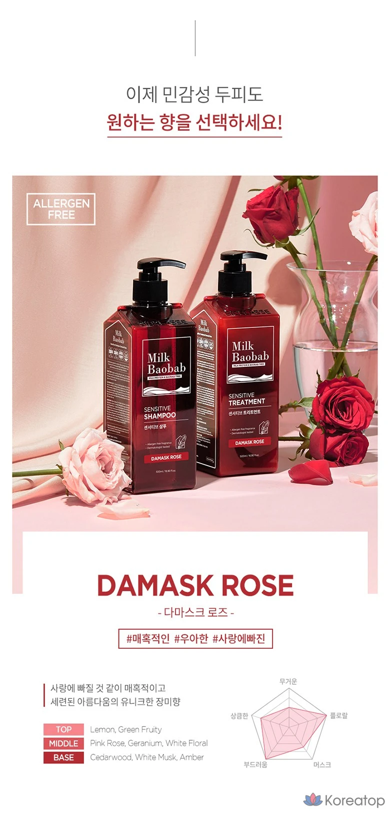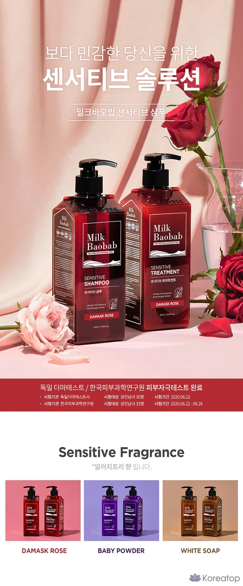 Шампунь Milk Baobab Sensitive с ароматом дамасской розы, 500 мл, 1 шт.