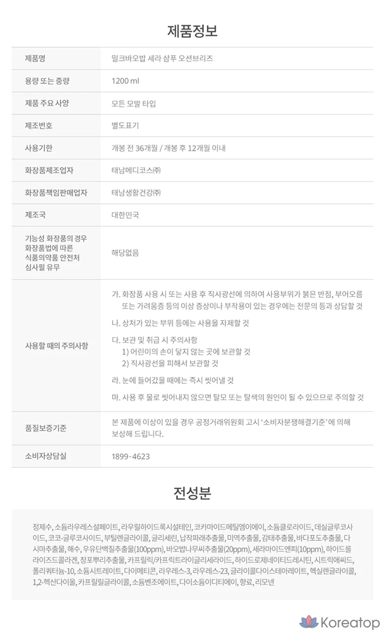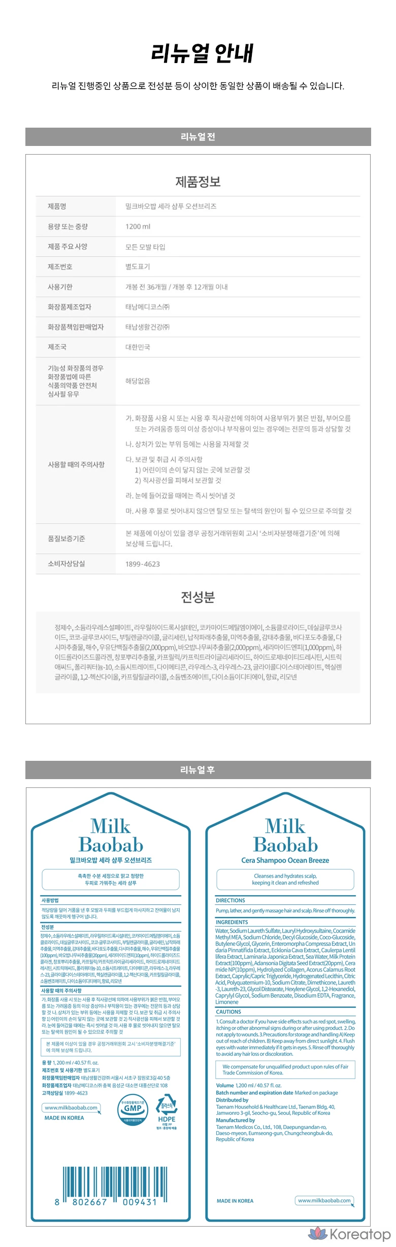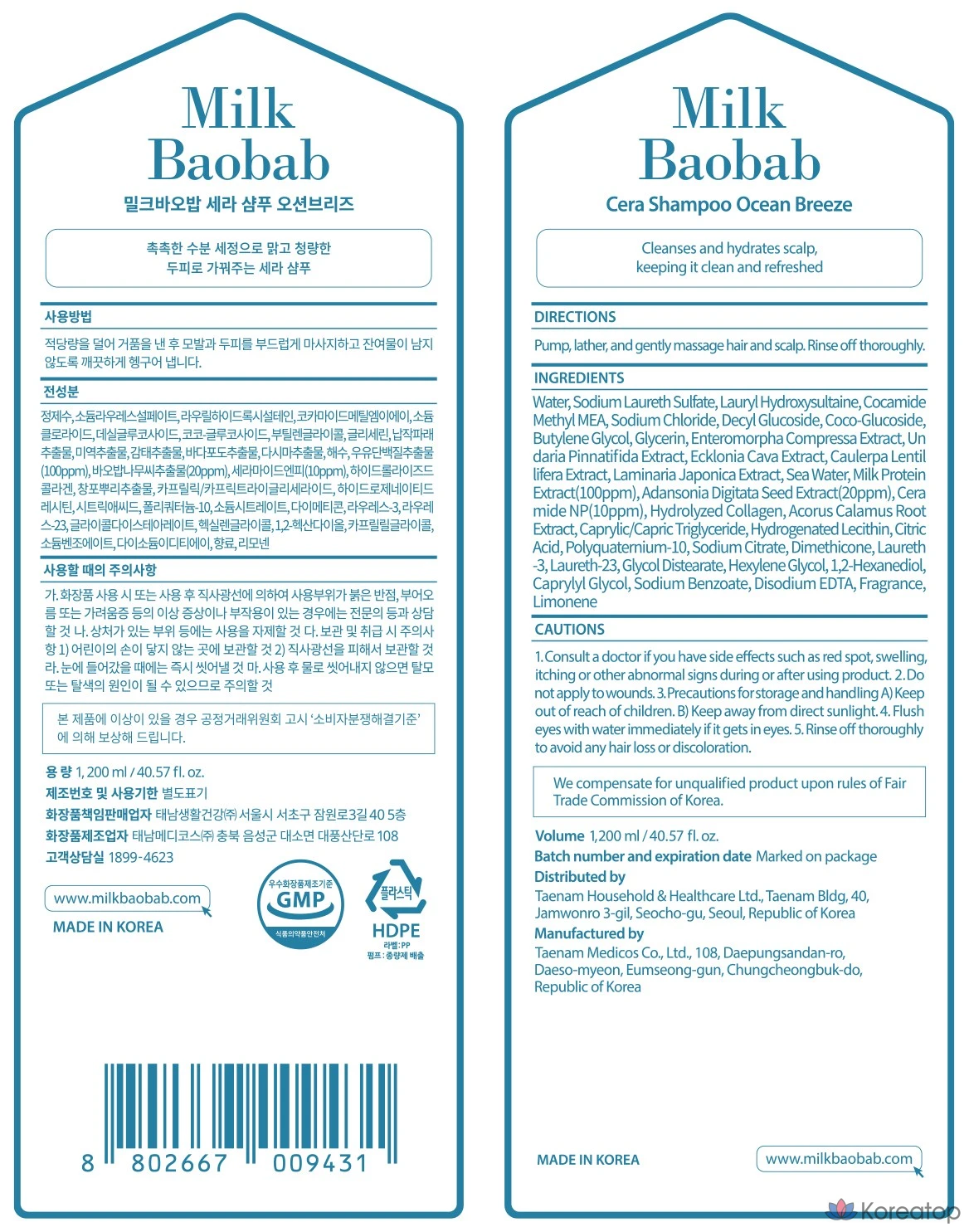 Шампунь Milk Baobab Sera с ароматом «Океанский бриз», 1,2 л, 1 шт.