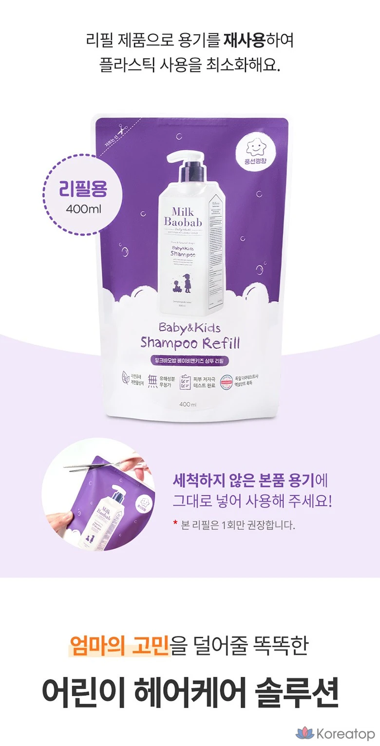 Сменный блок детского шампуня Milk Baobab с ароматом жевательной резинки, 400 мл, 1 шт.