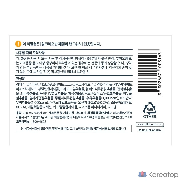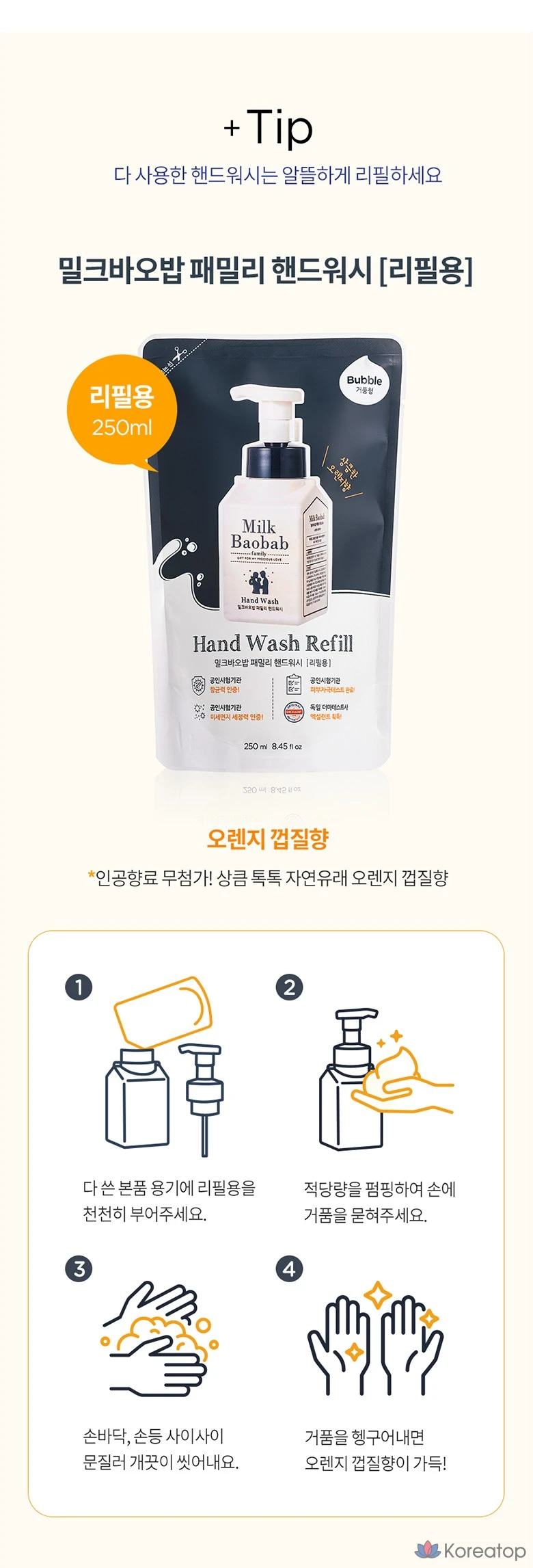 Сменный блок жидкого мыла для рук Milk Baobab Family, освежающий аромат апельсина, 250 мл, 1 шт.
