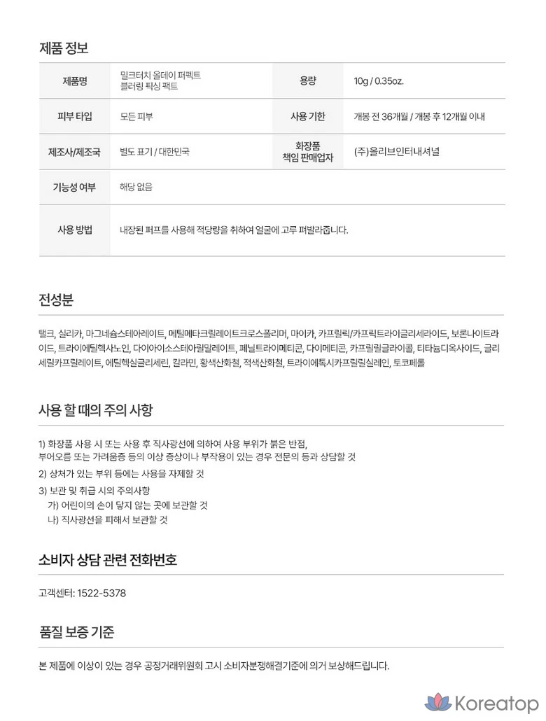 Матирующие салфетки для лица Milk Touch All Day Perfect Blurring Fixing Powder Pact Pore Oil Blotting Paper, 1 шт.