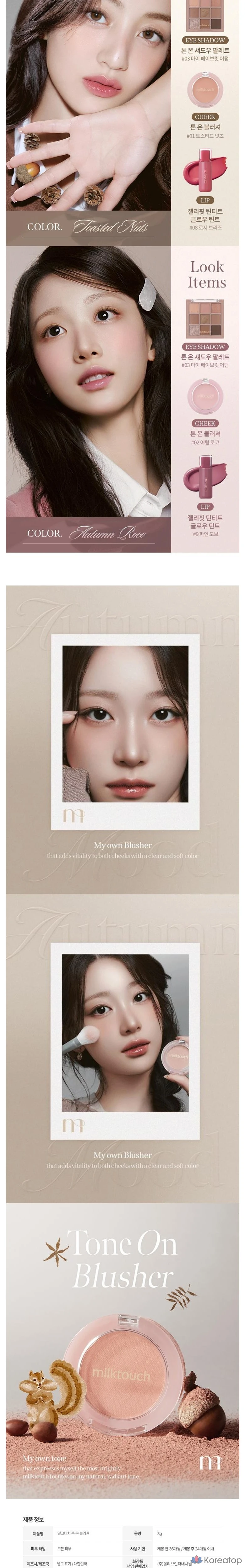 Румяна Milk Touch Tone-On, 1 шт., оттенок «Жареные орехи» (01).