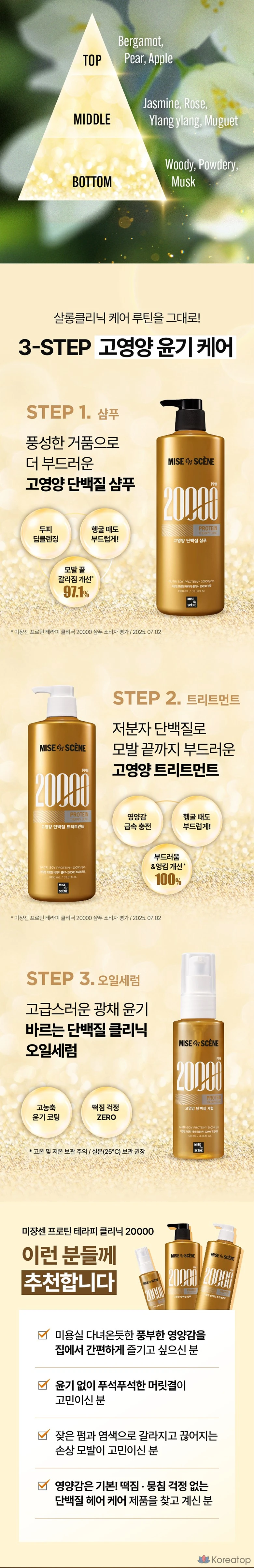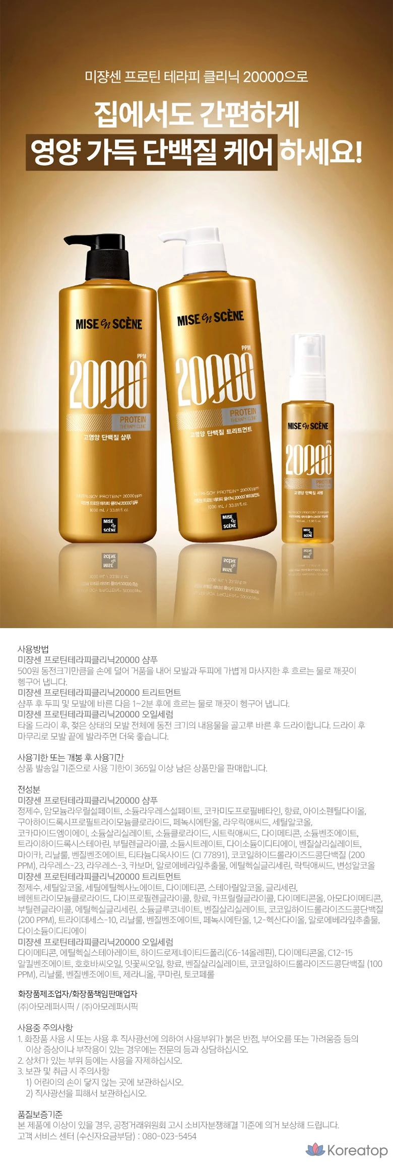 Шампунь Mise en Scene Protein Therapy Clinic 20000 с высоким содержанием белка, умеренно кислый, с фруктово-цветочным ароматом, 1 л, 1 шт.