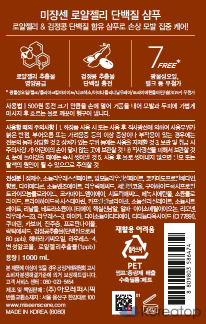 Шампунь с маточным молочком и протеинами Mise en Scene, 1 шт., 1 л