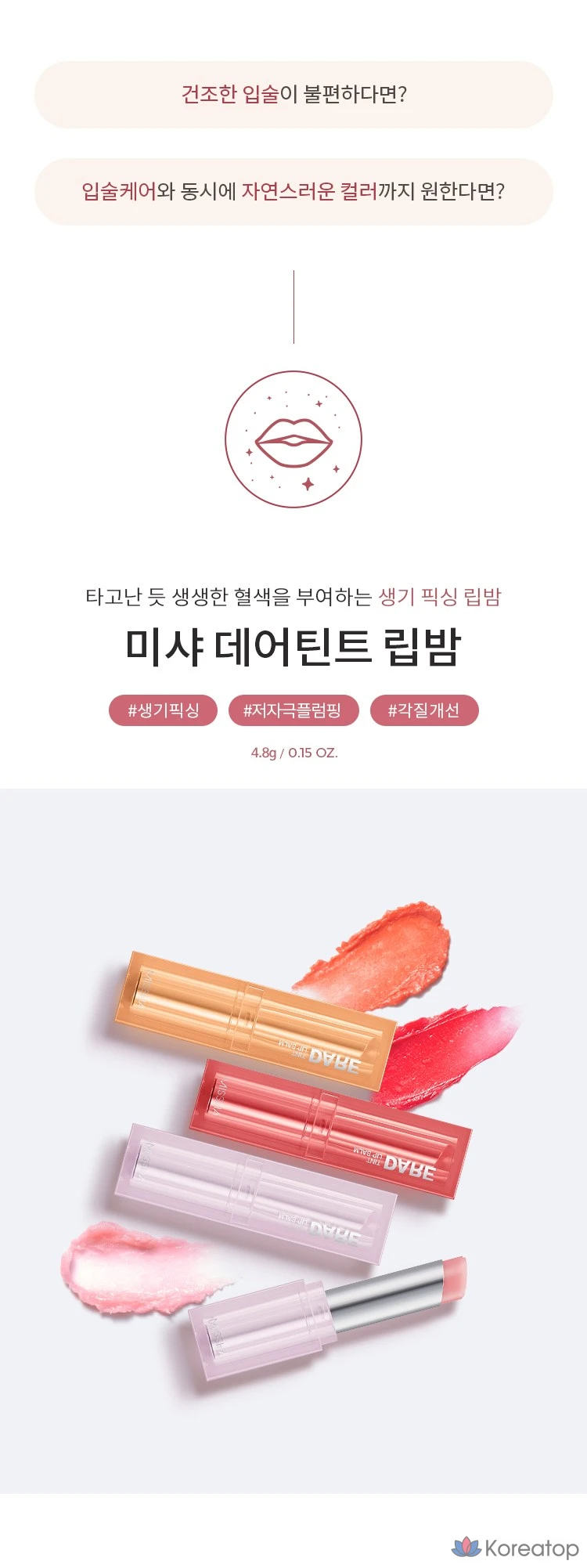 Бальзам для губ Missha Dartint, коралловый оттенок, 4,8 г, 1 шт.