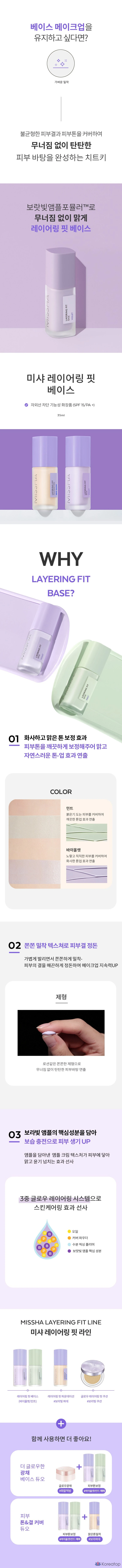 База под макияж Missha Layering Fit в фиолетовом оттенке идеально подходит для выравнивания тона кожи и создания свежего образа. Легкая текстура средства обеспечивает комфортное нанесение и длительное увлажнение. Благодаря многоуровневому нанесению, база позволяет добиться естественного сияния и скрыть мелкие несовершенства. Это идеальный выбор для тех, кто хочет подчеркнуть свою индивидуальность и добавить яркости в повседневный макияж. 🌟