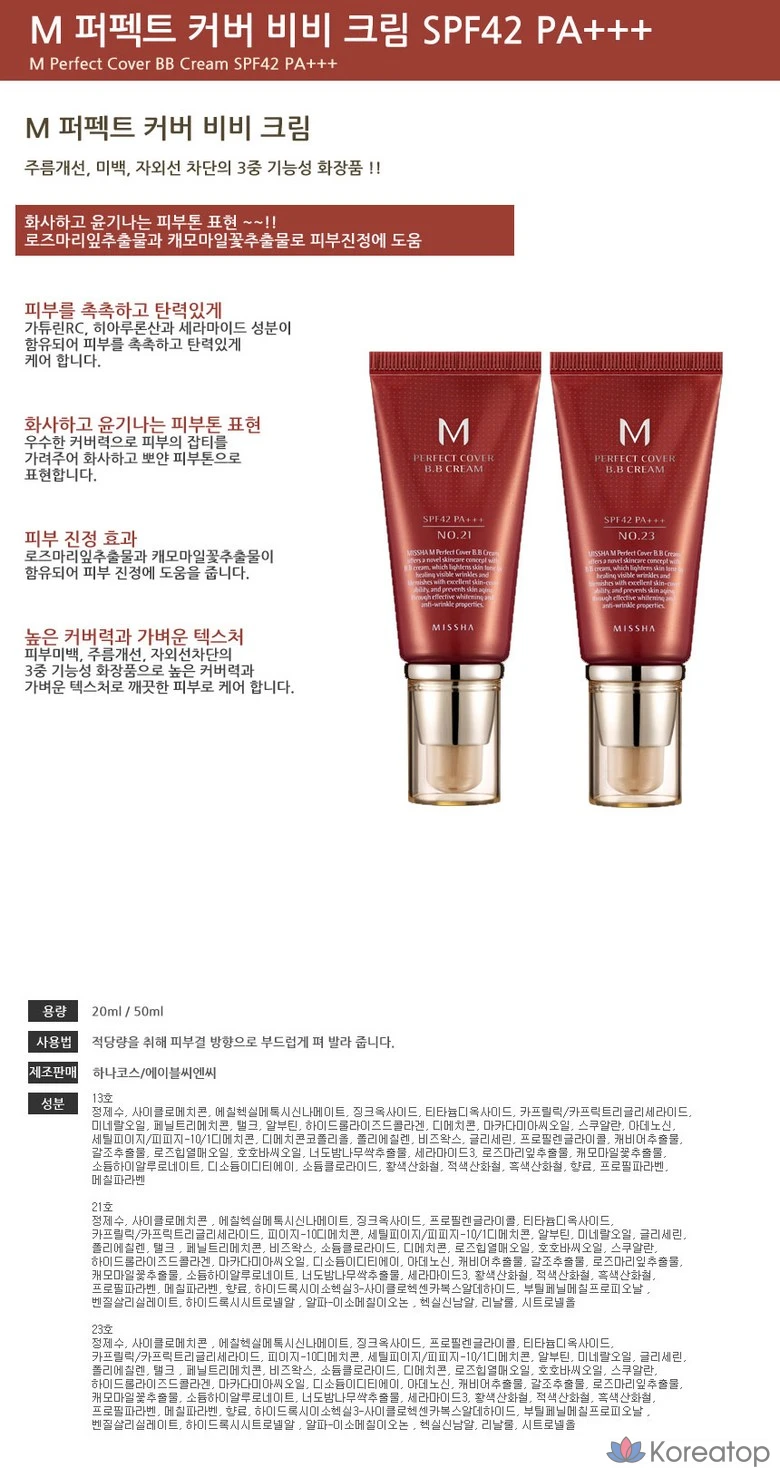 BB-крем Missha M Perfect Cover, 50 мл, № 23, 1 шт.