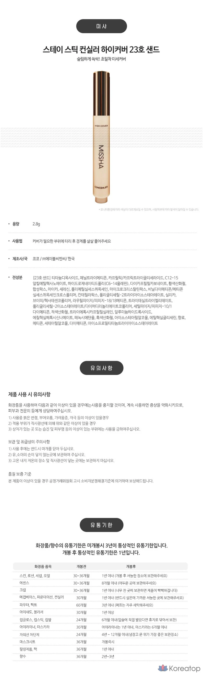 Консилер-стик Missha Stay Stick, высокая степень покрытия, 2,8 г, № 23 — песочный, 1 шт.