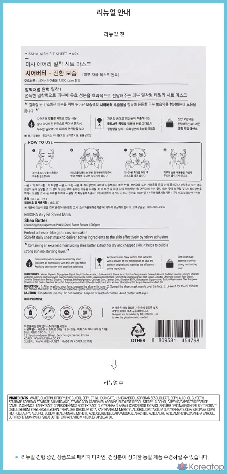 Маска-салфетка Missha Airy с маслом ши, 1 упаковка, 1 шт.